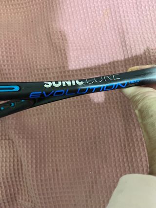 Pala de squash Dunlop Sonic Core Evolution. - Diseño moderno en color gris y azul. - Empuñadura blanca con logo. - Cordaje negro con detalles azules.