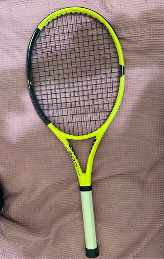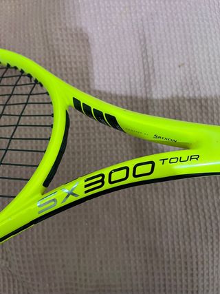 Pala de tenis Dunlop SX300 Tour en color amarillo neón y negro. Diseñada para ofrecer un gran rendimiento en la pista. - Marco de grafito. - Tamaño de cabeza: 100 sq.in. - Peso: 300g. - Patrón de encordado: 16x19.