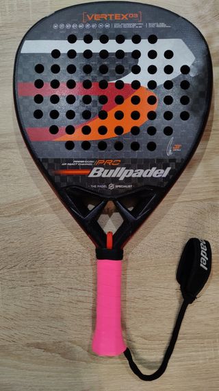 Pala de pádel Bullpadel Vertex 02 Avant en muy buen estado. Es un modelo de gama alta con signos normales de uso pero sin golpes estructurales ni grietas.