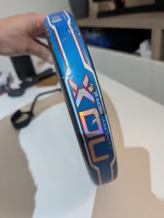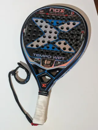 Vendo mi pala Nox Tempo WPT Luxury Series, modelo oficial del World Padel Tour. Es una pala de gama alta. Características técnicas: Caras de Carbono 12K Núcleo Multilayered Black Eva Sistema Smartstrap Forma de lágrima con balance medio. Estado de la pala: La pala tiene los roces típicos del juego en el marco que se ven en las fotos (solo pintura, no afectan al carbono). Importante: le falta una de las gomitas laterales del sistema antivibración (AVS), de ahí su precio reducido. Por lo demás, la estructura está perfecta, sin grietas
