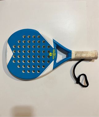 Pala de pádel Artengo modelo 710, ideal para jugadores jóvenes. - Diseño en color azul con detalles naranjas. - Cuerda de seguridad en el puño.