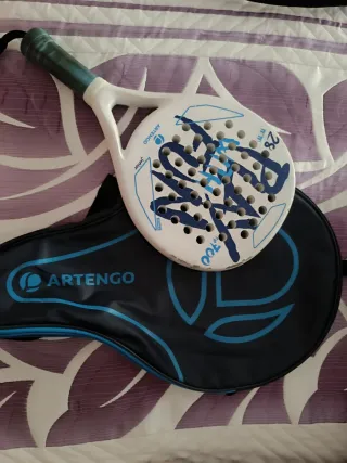 Se vende pala de pádel infantil de la marca Artengo, ideal para los más pequeños. Incluye su funda protectora. - Pala de pádel infantil. - Funda de transporte.