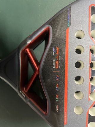 Pala de pádel Bullpadel Hack O2 Junior, diseñada para jugadores jóvenes. La pala va muy bien: No tiene ninguna grieta. Solamente roces de juego. NO HAGO ENVIOS. Solo entrega en persona.
