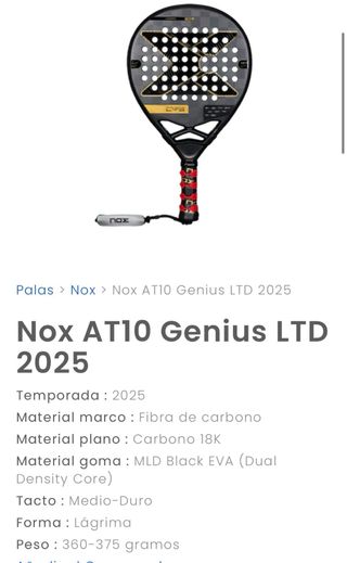 Pala de pádel Nox AT10 Genius 18k del 2022. He jugado muy pocos partidos con esta pala!! La vendo porque tengo otras 2!!!