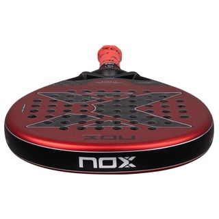 Pala de pádel NOX EA10 Ventus Hybrid 12K XTREM, diseñada por Edu Alonso. - Pala de pádel de alta gama. - Diseño moderno y llamativo en color rojo. - Acabado mate.