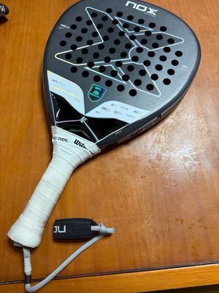 Pala de pádel Nox ML10 en buen estado. - Diseño con detalles en rojo y dorado. - Logo de NOX visible en el puño y en la pala. en buen estado. Ideal para jugadores principiantes o intermedios. Marcas normales de uso, sin golpes graves.