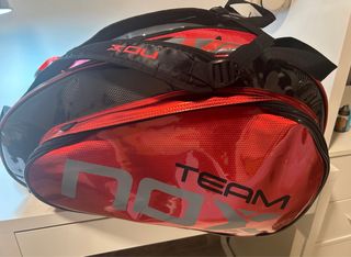 Paletero NOX y pala de pádel ML 10 PRO CUP. - Paletero de color rojo y negro. - Pala de pádel firmada por Miguel Lamperti.
