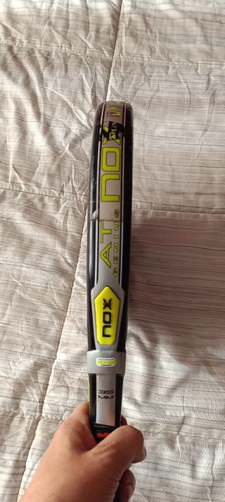 NOX AT10 GENIUS 18K 2024 La compré hace unos 3 meses por 150 €, pero la vendo porque me provoca molestias en la muñeca y prefiero cambiar a una pala más cómoda para mí. La pala funciona perfectamente y el motivo de la venta no es por defecto, sino por adaptación personal. Tiene algún picazo, lo adjunto en las imágenes, pero es superficial y únicamente afecta a la estética, nada interno. *Características* Carbono 18K Núcleo HR3 Black EVA Balance medio Forma lágrima Excelente combinación de control y potencia Pensada para jugadores de nivel medio-alto / avanzado *Estado* Uso: 3 meses Buen estado Algún picazo del uso normal