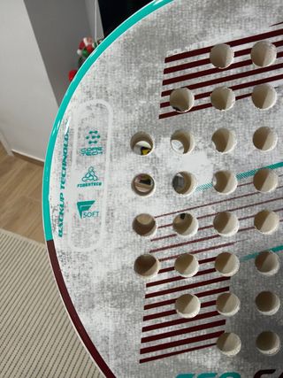 •PALA NUEVA, SIN ESTRENAR• -material resistente y duradero para jugar con intensidad. -Las caras tienen un acabado rugoso para agarrar la bola y controlar los efectos. -En el interior de la pala se ha creado un núcleo con polietileno Soft. -El núcleo tiene una densidad baja para tener un tacto blando. -Absorbe ligeramente las vibraciones para un juego agradable.