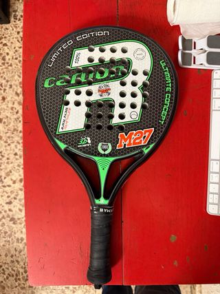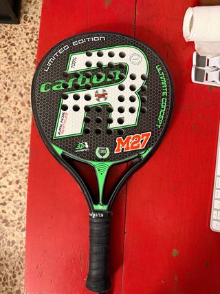 Pala de pádel Royal Padel, modelo Carbon M27, edición limitada. - Fabricada con carbono. - Incluye tecnología Ultimate Concept. - Diseño con acabado 3D. - Incluye funda. - Especial para gente con Epicondilitis
