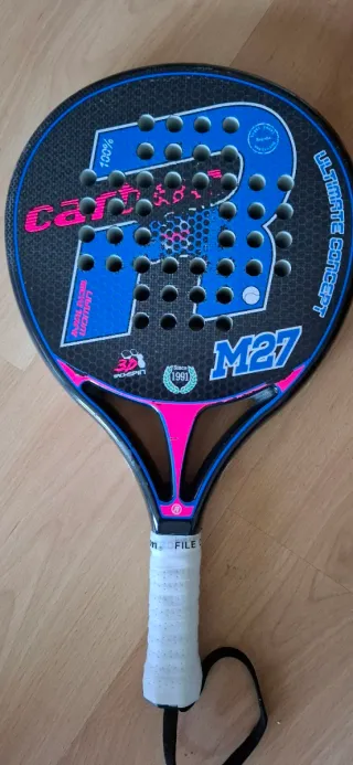 Se vende pala de pádel Royal Padel modelo M27 Light. Totalmente nueva. Características técnicas: 100% Carbono 3K con núcleo de goma blanda de Polietileno de alta densidad Superficie: Acabado rugoso con patrón hexagonal Diseño: Elegante acabado en carbono visto negro con detalles llamativos en rosa. Peso: Muy ligera 350 y 365 gramos. Hago envíos aunque prefiero trato en persona para que puedas comprobar que está impecable. ¡Escríbeme sin compromiso! #PalaPadel #RoyalPadel #M27Light #Epicondilitis #Carbono #PalaLigera #Bullpadel #Nox #Babolat #Deporte