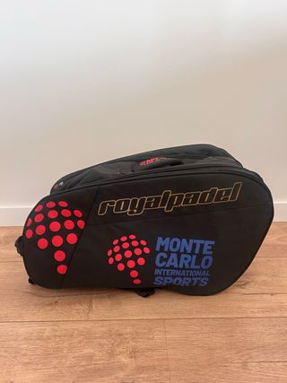 Paletero de la marca Royal Padel, con diseño en color negro y detalles en rojo y azul. - Dos compartimentos térmicos para dos palas