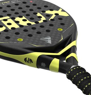 Pala de pádel SIUX Electra Pro ST3 en color negro y amarillo. - Diseño con agujeros en la cara. - Logo de SIUX en amarillo. - Grip blanco de Wilson. - Correa de seguridad negra. se valorará cambio.