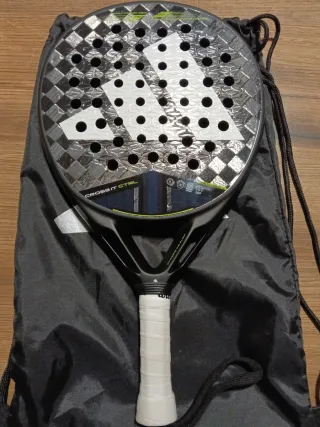Pala jugada actualmente por ALEX RUIZ. Una pala de control con muchísima pegada lleva la misma goma que la Metalbone HRD. Solamente utilizada en un peloteo cero partidos absolutamente nueva y con un peso muy ligero (350gr.) ideal para jugadores con problemas de codo o hombro. Precio no negociable Más palas en nuestro perfil - Superficie con acabado texturizado. - Logo de Adidas en grande en el centro. - Empuñadura blanca para un agarre firme. - Incluye funda protectora negra. Nox Bullpadel StarVie Head Varlion Wilson Siux Dropshot Sane Royal Babolat Softee Cobra Volt Oxdog Metalbone Hack Viper