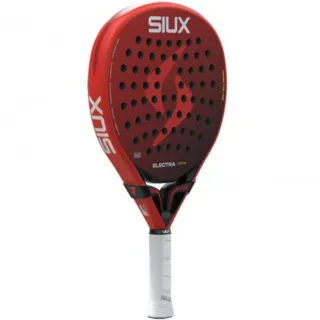 Pala de pádel Siux Electra Elite del año 2026. Diseño moderno y llamativo en tonos rojos y negros. - Acabado mate. - Marco de carbono. - Goma de alta recuperación.