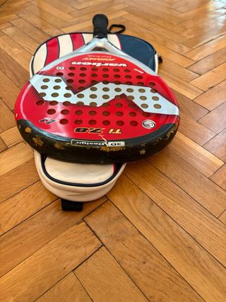 Pala de pádel Varlion Avant - Diseño en color rojo y blanco. - Incluye funda protectora. - Grip en buen estado