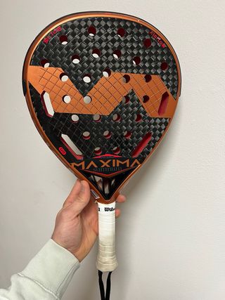 Precio negociable -Pala de pádel Varlion Prisma Máxima Summum con un diseño llamativo en tonos cobre y negro. La superficie presenta un patrón cuadriculado y agujeros para mejorar la aerodinámica.Cero usos, me la han regalado Pala de pádel nueva precintadada Fibra de carbono 12k gama alta Tecnología airflow para movimientos mas rápidos - Diseño en cobre y negro. - Patrón cuadriculado en la superficie. - Agujeros para aerodinámica.