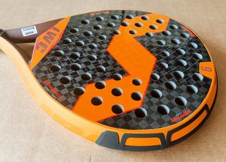 Pala para jugadores nivel medio-avanzado. Tienes marcas de uso, pero en perfectas condiciones para seguir siendo usada. Con forma de lágrima y presenta un rango de pesos por debajo de lo habitual, entre 340 y 365 gramos. Fabricada mediante un tubular bidireccional de carbono y cuenta con un núcleo de foam Hypersoft laminado mediante tejido plain de fibra de carbono 7 Rhombus y reforzada en el corazón con tejido plain de fibra de carbono. Superficie rugosa gracias a su textura hexagonal en relieve de resina epoxi. Esto nos ayudará a conseguir mejores efectos en los golpes cortados.