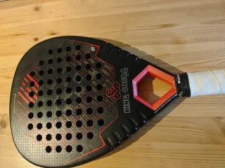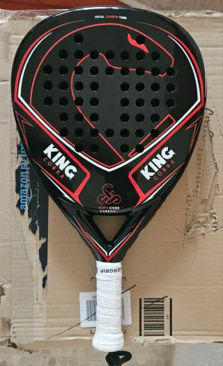 Pala de padel en perfecto estado de reestreno, solo se ha probado en 1 set. Se trata de una gran pala de potencia, con mucha pegada pero muy cómoda dado que en mi sensación la dureza es media y un puntito menos y no me hago a ella porque estoy acostumbrado a palas más duras. - Formato Diamante. - Carbono 3k. - Gran punto dulce. - Gran salida de bola. - Rugoso arenoso bien marcado en las caras. #padel #palapadel #padelracket #vibor-a #viborapadel #kingcobra