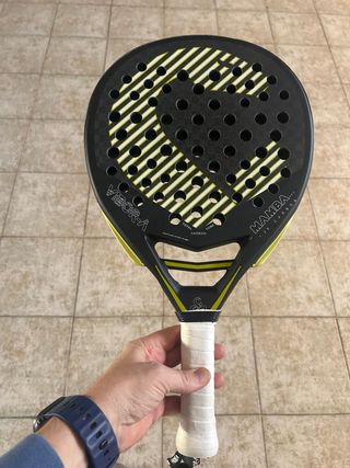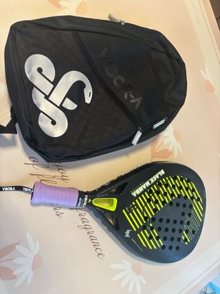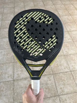 Pala de pádel Vibor-A. - Modelo Black Mamba. - Incluye funda. - Diseño en negro y amarillo. - Le puse un overgrip pero no he llegado a utilizarla porque me han regalado otra.