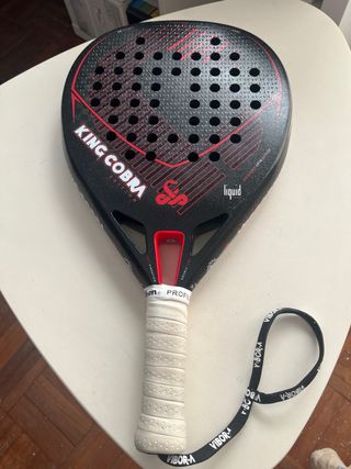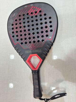 Pala Víbora King Cobra, edición aniversario, muy poco uso, practicamente nueva con protector. - Diseño en negro con detalles en rojo. - Logo de la marca en relieve. - Cómoda y ligera