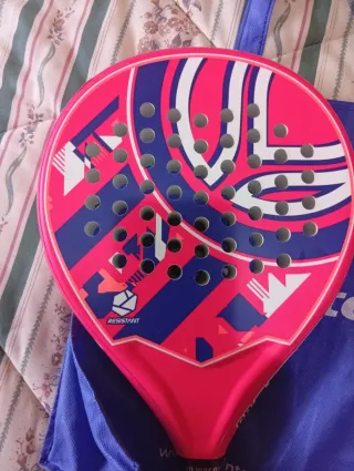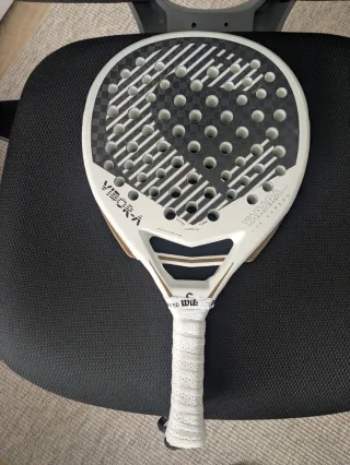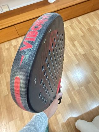 Forma híbrida-redonda: ideal para un equilibrio perfecto entre potencia y control. • Nuevo molde perforado lateralmente: mejora la aerodinámica y permite un golpeo más preciso. • Marco de carbono 12K: mayor resistencia y durabilidad. • Núcleo EVA Pro Multidensidad: absorbe mejor las vibraciones y ofrece mayor confort. • Acabado mate rugoso: mejora el control de los efectos y aumenta la durabilidad de la pala. • Pertenece a la colección de palas Vibora 2025. Unicamente la he utilizado dos veces, tengo factura de garantía, la caja y el emboltorio.