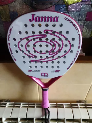 Pala de pádel Janna con diseño de carbono extreme muy ligera características en foto con funda usada para dar dos clases en excelente estado MÁS EN MI PERFIL VIBORA DUNLOP NIXON KOMBAT DABBER MIDDLEMON WILSON KUIKMA NOX JOMA NB SHL ARTENGO VAIRO ADIDAS VARLION BALBOLAT HOMBRE MUJER CHICA JUNIOR NIÑO NIÑA REGALOraquete paddle,raquette, racchetta paddle
