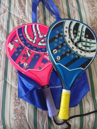 Se venden dos palas de pádel junior, ideales para niños. De seis años en adelante muy ligeras la roja prácticamente nueva sin uso el azul con mínimo roces Más en mi perfil Joma Adidas artengo nox víbora head siux bn kombat vairo varlion kuikma shl balbolat Dunlop nixon hombre mujer chica junior niño regalo raquete paddle,raquete,racchetta paddle