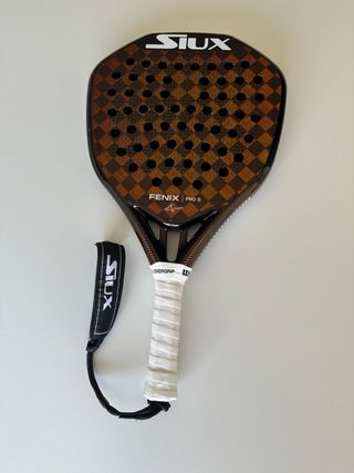 Vendo pala de pádel Siux Fenix Pro 5, en estupendas condiciones. solo tiene 4 partidas , se vende porque me regalaron otra Peso: 355gr En perfecto estado, lista para usar , lleva un protector de plastico para no rascar la pala Comprada el 04 de Junio , tiene Garantia de 6 meses Precio original 250€