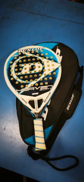 Pala de pádel Dunlop Heaven Soft con funda. - Pala de pádel Dunlop. - Modelo Heaven Soft. - Incluye funda de transporte. - muy poco uso. Tiene un golpe sin rotura , que NO afecta el juego.