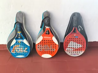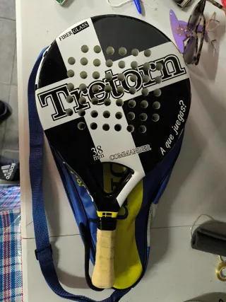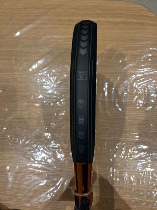 Pala ganada en un torneo. Sólo se utilzado durante 2 meses. En muy buen estado. Esta nueva versión continúa la línea marcada por su predecesora, por lo que es una pala de potencia pensada para jugadores que busquen mejorar su nivel en el juego ofensivo. Su estructura externa está compuesta por fibra de vidrio y en su interior cuenta con goma EVA Soft de alta densidad, de manera que proporciona un plus de potencia. Además, también consigue una buena amortiguación del golpeo, reduciendo las vibraciones que llegan al brazo del jugador. Características: Nivel: Intermedio Juego: Potencia Forma: Diamante Núcleo: Goma EVA Soft