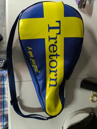 Pala de Tenis con funda. - Asa un poco desgastada - Incluye funda. - Diseño con detalles en naranja y negro.
