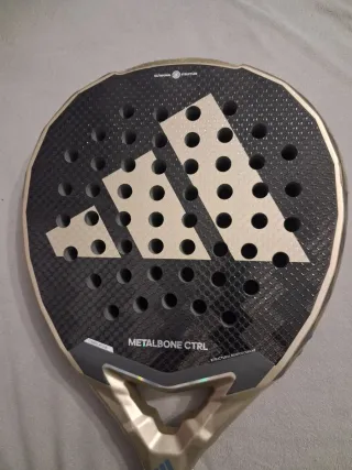 Pala de pádel Adidas Metalbone Control, modelo 2025. Diseñada para un control excepcional en la pista. - Logo de Adidas en relieve. - Diseño con acabado mate y detalles en dorado. - Superficie con agujeros para mayor aerodinámica.