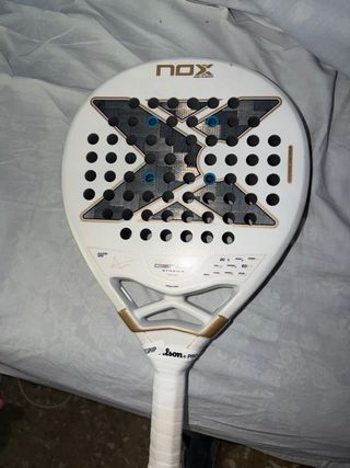 Pala de pádel NOX EA10 hybrid de Edu Alonso. La pala tiene 3 partidos, la vendo porque he firmado con adidas y no puedo usarla. Tiene los tipicos roces del uso pero nada mas.