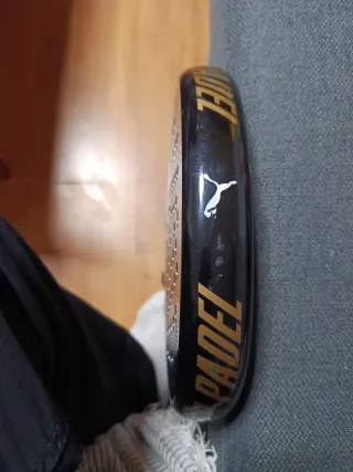 Pala de pádel Puma Momo, nueva y sin etiquetas. - Diseño llamativo con el logo de Puma. - Empuñadura blanca. - Ideal para jugadores que buscan una pala de calidad.