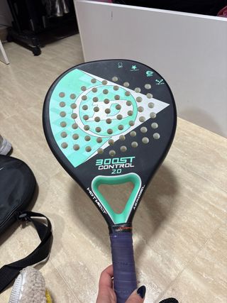 Pala de pádel Dunlop Boost Control 2.0 en excelente estado, casi sin uso. - Diseño en negro y verde menta. - Tecnología Aerogel. - Acabado Hot Melt.
