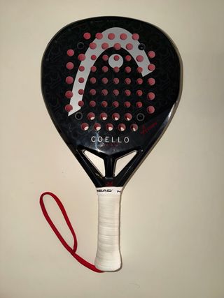 Head Coello Team 2025. - Pala de pádel de color negro. - Diseño con detalles en rojo y plateado. - Incluye cordón de seguridad rojo. - Núcleo: Foam. - Acabado: Brillo. - Superficie: Lisa. - Cara: Fibra de vidrio. - Forma: Diamante. - Peso: 360g. TECNOLOGÍA - Superficie: de fibra de vidrio para una mayor sensación de confort. - Power Foam: para una respuesta rápida y una pegada explosiva. - Auxetic 2.0: un tacto mejorado y mayor estabilidad. - Optimized Sweet Spot: amplía la zona de impacto. - Carbon Frame: estructura más rígida y resistente. - Power Stabilizer: para un swing más estable y preciso.