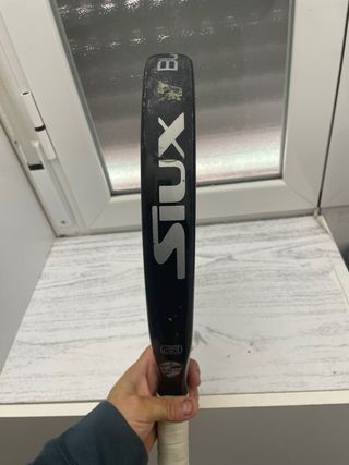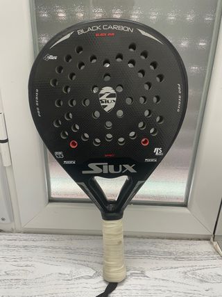 Pala de pádel Siux Black Carbon Effect con acabado brillo sin rasguños ni golpes. BUEN ESTADO - Diseño moderno y elegante. - Materiales de alta calidad. - Ideal para jugadores que buscan control y potencia.