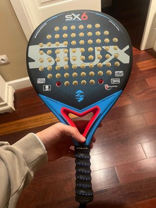 🌀 Pala Siux SX6 Pala de pádel en excelente estado, ideal para jugadores intermedios que buscan control y potencia equilibrados. ✅ Forma redonda y núcleo EVA Soft para gran comodidad y salida de bola. ✅ Marco y caras en fibra de vidrio, reducen vibraciones y mejoran el tacto. 🎾 Perfecta para mejorar tu juego y disfrutar cada punto. 💥 ¡Lista para usar y a muy buen precio!