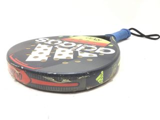 Pala de pádel Adidas RX100 con un diseño llamativo y forma redonda, ideal para principiantes. Se ha usado un año a partido semanal.