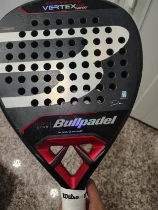 Pala de pádel Bullpadel Vertex 02 con diseño moderno y deportivo. Ideal para jugadores avanzados. - Marco de carbono. - Goma Black EVA. - Acabado mate. se adjuntan fotos de los desperfectos (un salto de pintura en el corazón, y roces del propio uso)