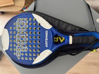 Pala de pádel Artengo en buen estado, lista para jugar. Diseño en color azul con detalles blancos. - Pala de pádel Artengo. - Color azul y blanco. - Incluye funda.