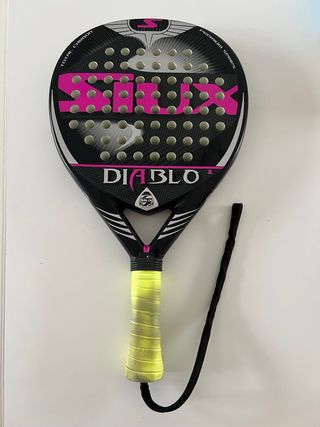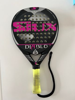 Pala de pádel modelo junior nueva a estrenar SIUX Diablo. Aun con el precinto y la etiqueta, nunca usada. Peso 330 gramos.