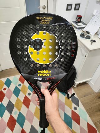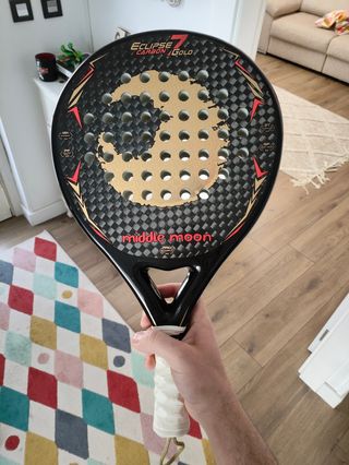 Pala de pádel Middle Moon Eclipse 7 Gold en perfecto estado. Apenas usada. - Modelo: Eclipse Carbon 7 Gold. - Marca: Middle Moon. - Fabricada en España. - Serie negra.
