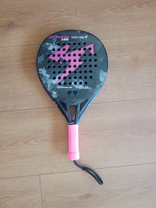 Vendo pala de pádel KÖRDE 4 AURUM LUX en muy buen estado. Es negra con detalles rosas. - Marca: KÖRDE - Modelo: AURUM LUX - Color: Negra con detalles rosas