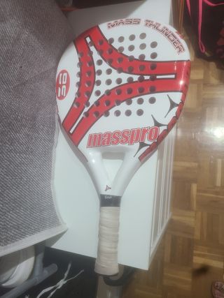Pala de pádel Masspro Mass Thunder con poco uso. Es una pala ligera y manejable, ideal para jugadores de nivel intermedio. - Modelo: Masspro Mass Thunder - Diseño: Blanco y rojo - Estado: Usada, pero en muy buen estado.