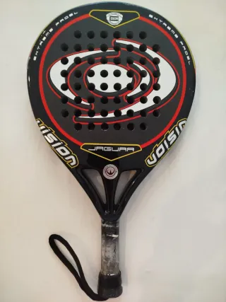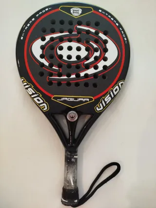 Pala de pádel Vision Jaguar con acabado en carbono. Diseñada para un juego potente y preciso. - Marco y caras de carbono. - Forma redonda, más dirigida al control y precisión. - Incluye funda. Unico dueño, sin daños, se cambia por compra de otra. Solo hay que poner el grip.