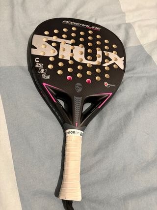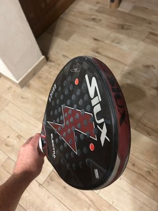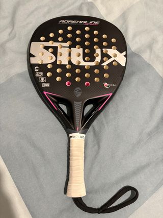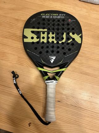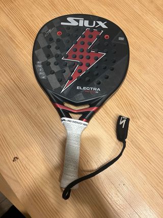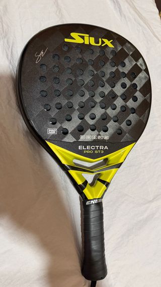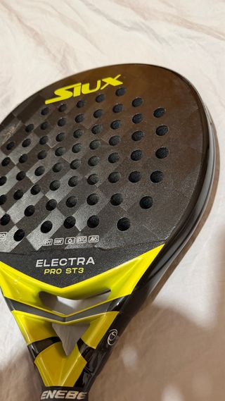 Pala de pádel Siux Electra ST3 Stupa Pro. Está absolutamente nueva, solo tiene 7 partidos contados. La compré por cambiar estilo de pala pero no me hago a ella. No tiene ni un golpe, tiene puesto protector y 1 grip que se lo puse nada más comprarla.