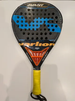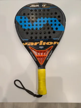 Pala de pádel Varlion Avant Carbon con difusor Hexagonal. Reparada en dos zonas como se ve en las imágenes (la parte negra), pero se puede usar sin problema. Al moverla suena, eso se debe al protector de plástico duro que tiene en la parte superior. Ocurre en muchas palas Varlion.