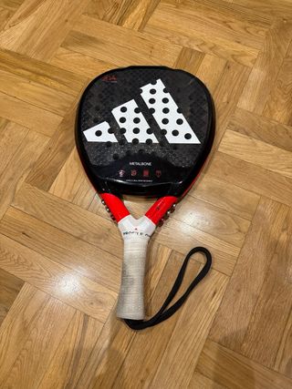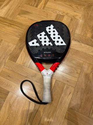 Pala de pádel Adidas Metalbone del año 2022. Como se ve en las fotos tiene signos de uso y en una foto se aprecia que tiene una reparación realizada. Pero la pala sigue funcionando perfectamente. Sería ideal como segunda pala o para gente que ha empezado hace poco en el pádel y quiero algo que les ayude a seguir mejorando. Es una pala de potencia pero te proporciona buen control sobre la bola. Precio negociable